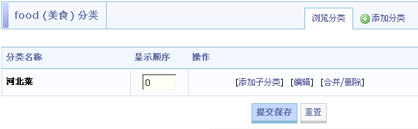 填写好点击“提交保存”,会提示添加成功,然后自动跳转到分类浏览页面,如下图: