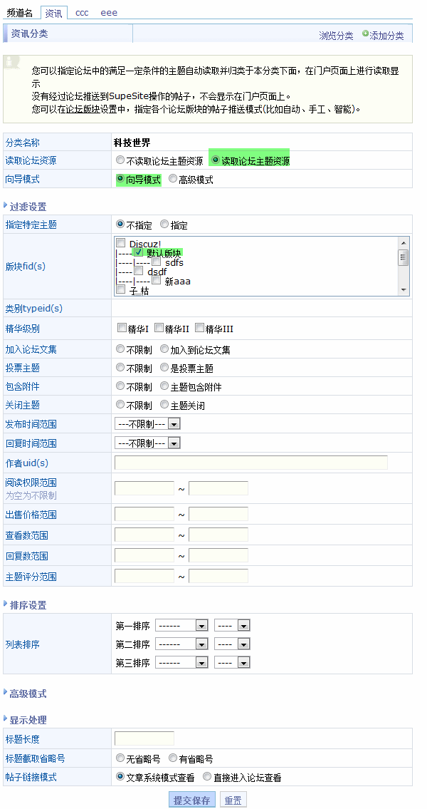 说明:读取论坛主题资源,会把论坛中的主题读出来到资讯分类里。