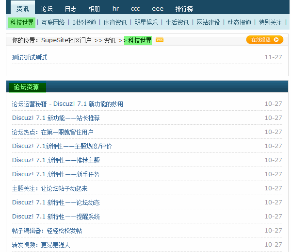 点击提交,那么“科技世界”分类下的说明介绍和“test”中的设置相同