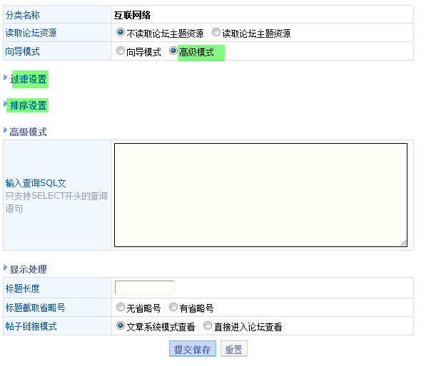 站长可以按照自己的要求写成 sql 查询语句来实现要显示的内容和主题。