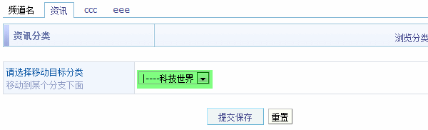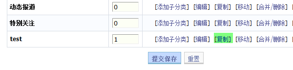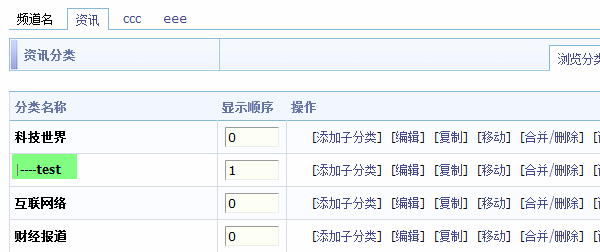 提交后,“test”分类移动到“科技世界”这个分类的下面了,如图: