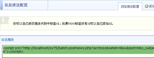 内容标签id:如果要推送的论坛或 SupeSite 内容标签没有定义 id, 需要站长自定义添加没有使用的 id;