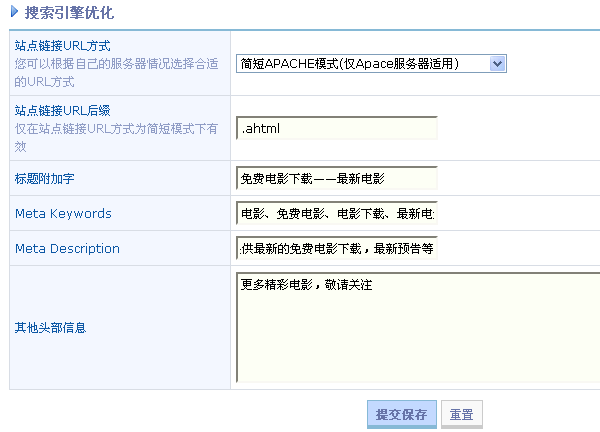 至此,整个搜索引擎优化功能设置完毕。
