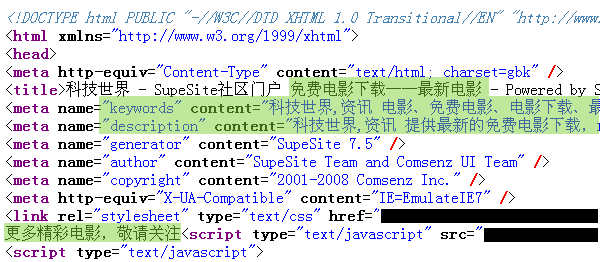 其中,<title> 标签中是“标题附加字”内容,“Meta Keywords”、“Meta Description”内容包含在 <meta> 标签中,“其他头部信息”也在 <link> 标签后给出。