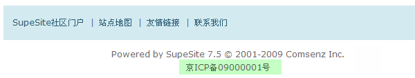14、网站备案信息:这里填写站点的备案信息,如:京ICP备09000001号,会显示在站点的页脚,如下图所示: