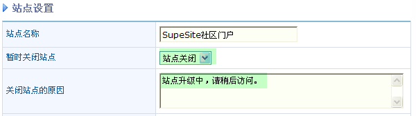 功能所在位置:SupeSite 后台 => 系统管理 => 系统设置 => 站点设置