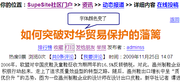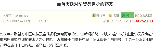 打开一篇资讯文章,点击文章右下方的“打印”链接,如下图所示: