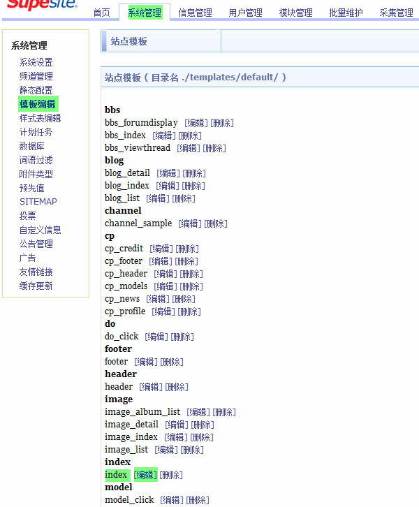 具体步骤:点击 系统管理 => 模板编辑 => 添加站点模板(右侧):