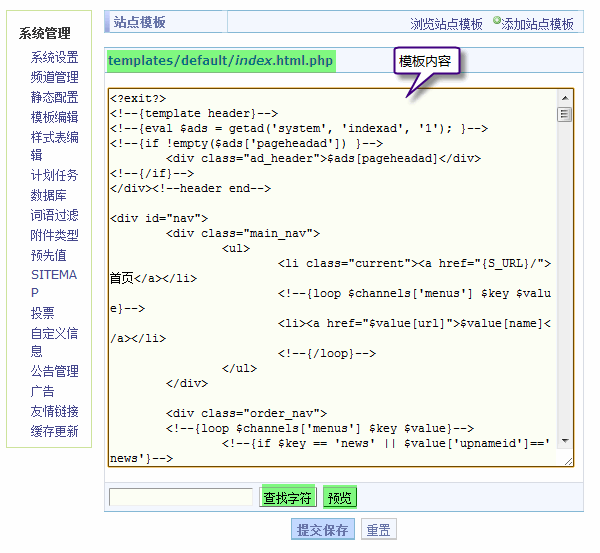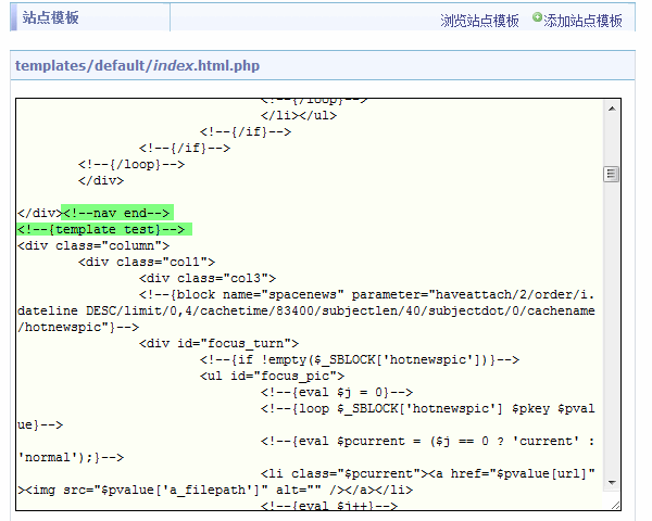 下面以编辑 综合首页模板文件 index.html.php 文件为例来讲解: