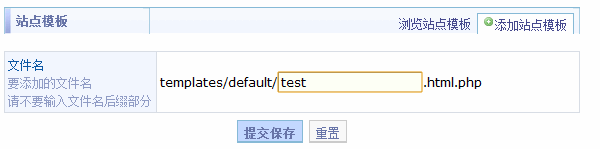 创建好 test.html.php 这个站点模板以后,可以尝试在在线编辑中填入如下内容,并保存: