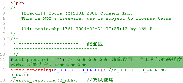 下载压缩包,打 tools.php 文件,在密码设置区域设定 tools 的密码: