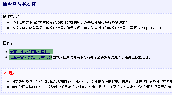 1、检查或修复数据库,对所有数据表进行检查修复工作。