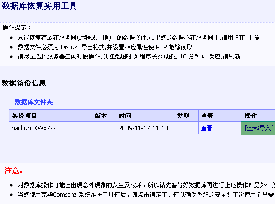 此功能可以一次性导入 SupeSite 7.5 产品备份的数据库,前提是您已经做过数据备份。