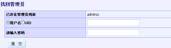 此功能可以帮助站长找回遗忘的管理员,如果应用和 Ucenter 的通信方式是基于 MySQL 进行的,在这个页面就可以完成管理员权限的提升、密码的更改、安全问答的去除等。或者站长可以在此处把用户提升管理员后到 Ucenter 中更改用户的密码信息。