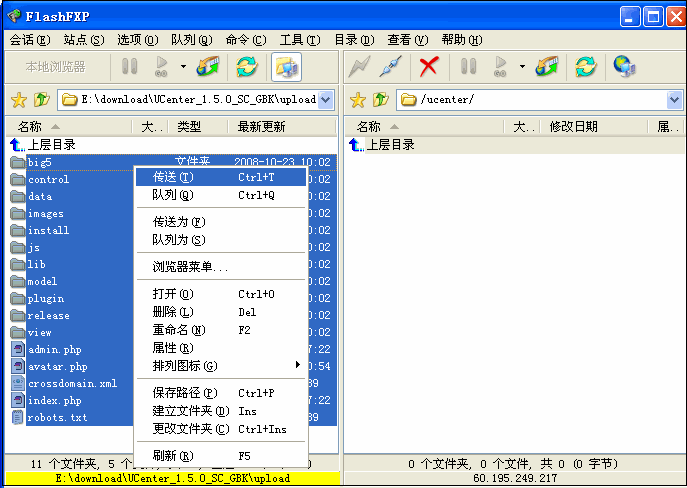 将其中 upload 目录下的所有文件使用 FTP 软件上传到空间,如下图所示: