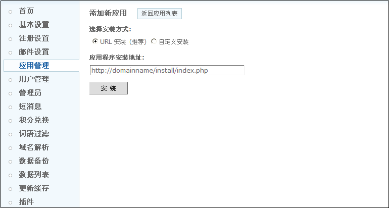 上图界面中选择“URL安装(推荐)”,填写好“应用的安装的URL”就可以开始安装各个应用了。