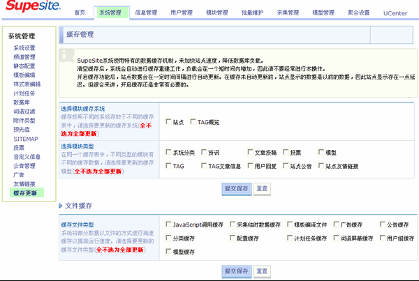 SupeSite 7.5 的缓存更新分为模块缓存和文件缓存两部分。