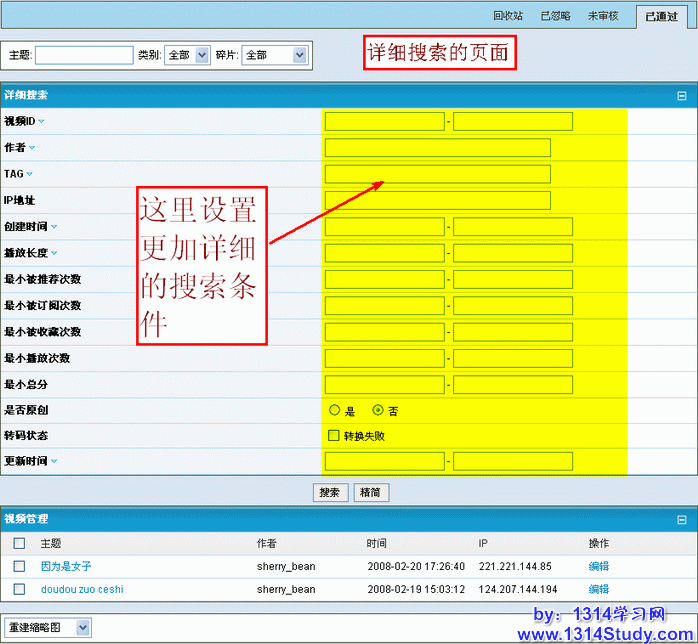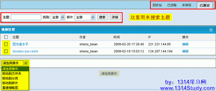 这里分为三个部分为大家讲解视频管理这里的功能和管理方法: