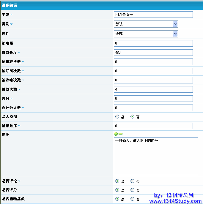 在这里可以修改某个视频的参数。