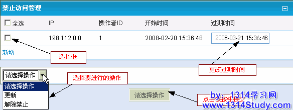 如果想禁止某些非法 ip 的访问,可用后台的禁止访问功能,下面将详细介绍该功能:
