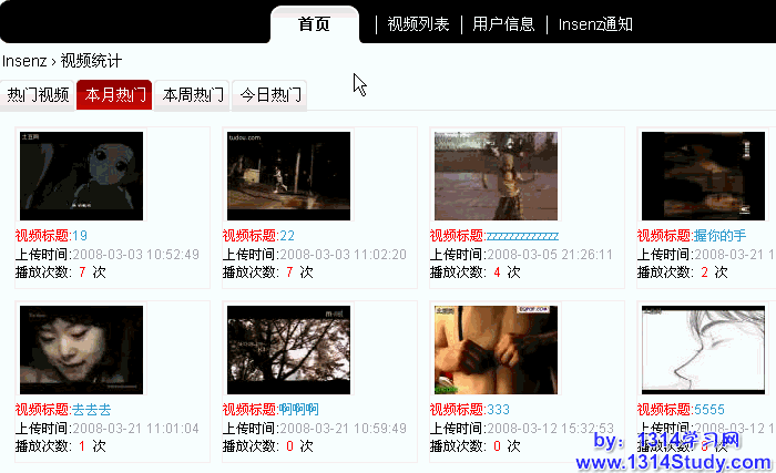 登录成功之后,就会看到您的站点上传的视频页面,您可以在此页面查看到有关这些视频的统计信息,如下图所示: