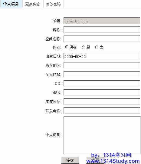 在这里您可以修改以前的信息,点击重置,即可清空刚填入的信息,如果已经确认所填写的信息,点击提交即可完成信息的修改。