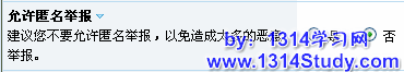 允许匿名举报功能主要是允许用户匿名举报非法信息,当然建议您不要允许匿名举报,以免造成太多的恶意举报,如下图所示: