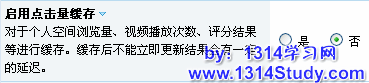 启用点击量缓存主要功能是对于个人空间浏览量、视频播放次数、评分结果等进行缓存。缓存后不能立即更新结果会有一定的延迟。如下图所示: