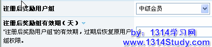 SupeV 还支持注册之后奖励用户组的功能,这是一个鼓励注册的设置。可以设置注册后奖励用户组和注册后奖励组有效期,过期后恢复原用户组权限。如下图所示: