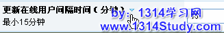 更新在线用户间隔时间指的是记录现在往后这么长时间内的在线人数,为了不影响性能,这里的最小设置为15分钟,如下图所示: