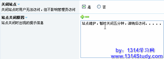 只要选择上“是”,然后将关闭的原因设置好即可,这样用户访问的时候将会出现如下图所示的提示,当然,不会影响管理员访问。