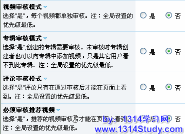 Supev 还包含视频、专辑、评论的审核模式以及必须审核推荐视频的开关,如下图所示: