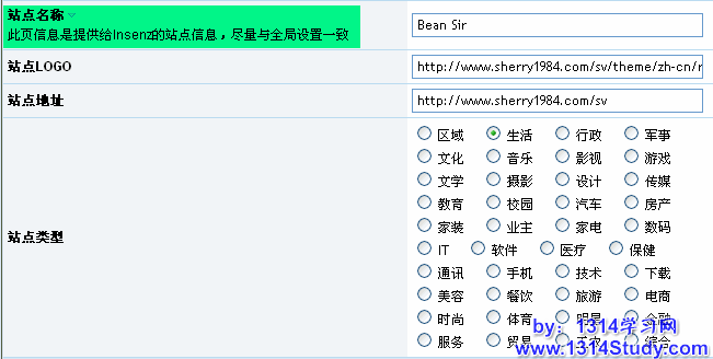 注意:这些信息是提供给 Insenz 的站点信息,尽量与全局设置一致!