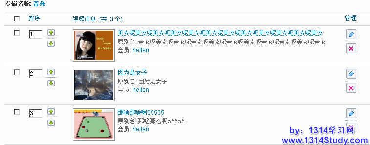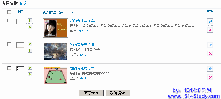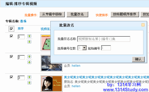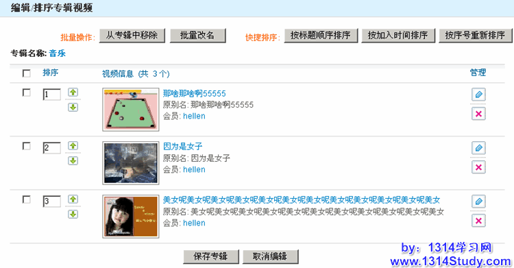 (1)、按标题顺序排序:是指按专辑中视频的别名重新排序。