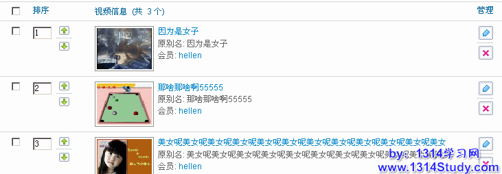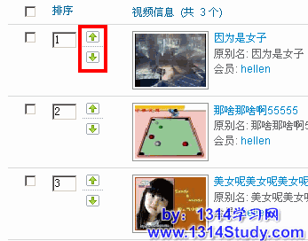 (3)、按序号重新排序:是指视频按照指定的先后序号重新排序,重新排序前如下图所示: