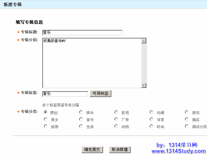 如果你还没有专辑,点击上图所示手指的地方,可以新建一个专辑。如下图所示: