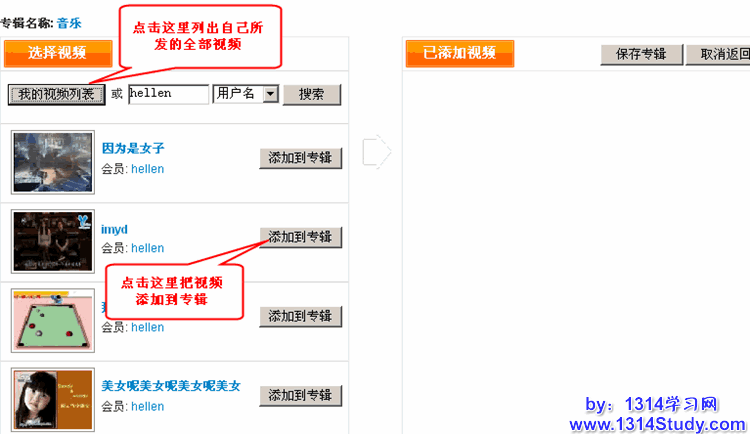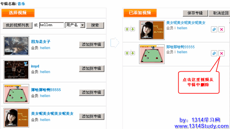 所在位置:用户管理后台 => 管理视频 => 专辑管理