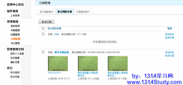 在这里可以看到订阅的所有专辑的信息,包括专辑的名称、最后编辑时间,以及该专辑中的三个视频。
