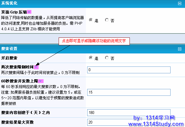 其中页面 Gzip 压缩和 60 秒搜索并发数上限会加重服务器负担,需要根据自己的站点情况酌情设置。