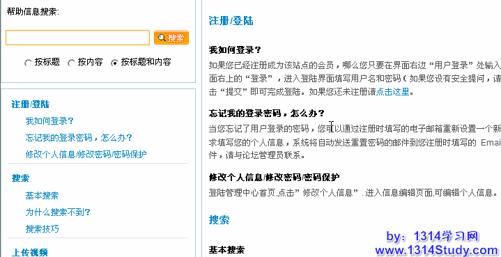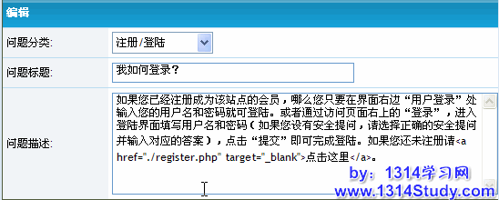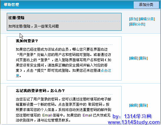 默认的系统中已经内置了常用的帮助内容,比如如何去注册、登录以及忘记了登录密码该怎么办等等。