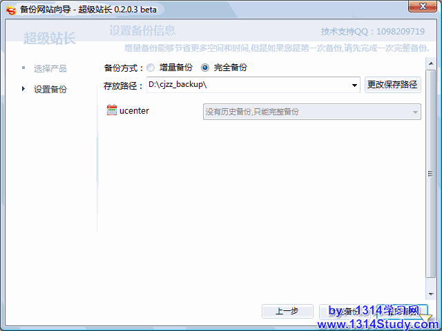 备份方式:增量备份、完全备份。如果之前有备份记录可以选择“增量备份”只备份有变动的文件和数据库,可以节省备份/恢复中产生的流量以及站长的时间;如果之前没有历史备份请选择“完全备份”。