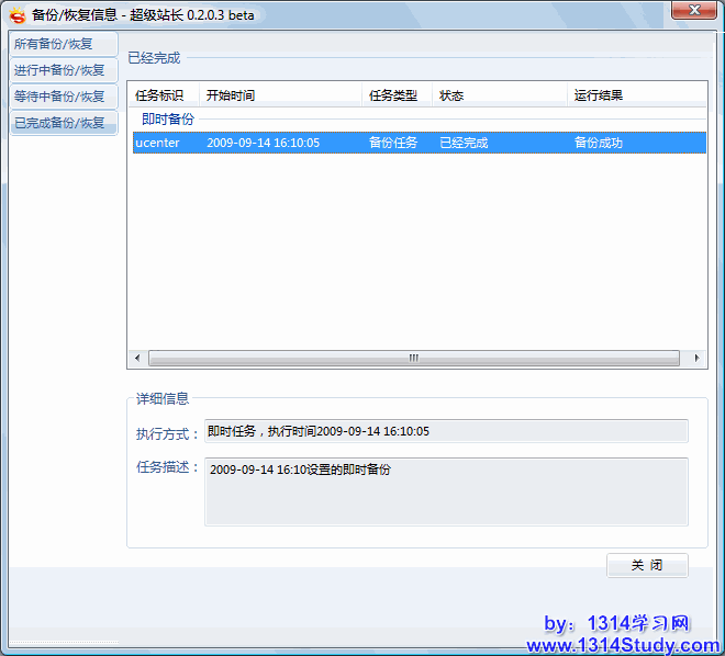 备份完成: