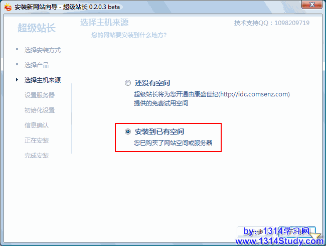 主机来源选择“安装到已有空间”: