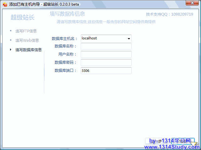 填写“绑定域名”后点击“下一步”进入填写数据库信息界面: