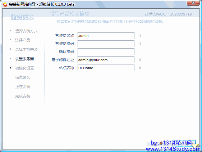 “下一步”是设置网站管理员信息: