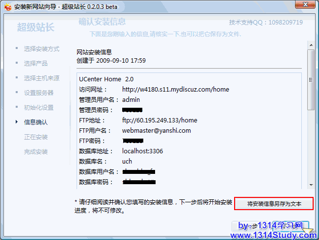 确认信息并将安装信息下载保存到本地做备份,然后点击“下一步”开始安装: