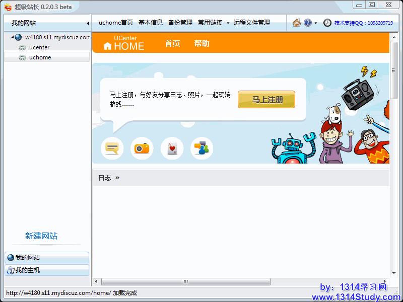 我们返回超级站长主页查看安装好了的 UCenter Home 2.0 网站: