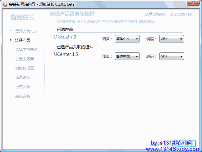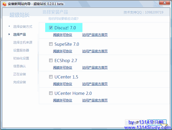 点击“下一步”进入产品选择界面,选择您要安装的产品,点击“下一步”,这里我们以安装 Discuz! 7.0 为例为大家讲解安装方法。