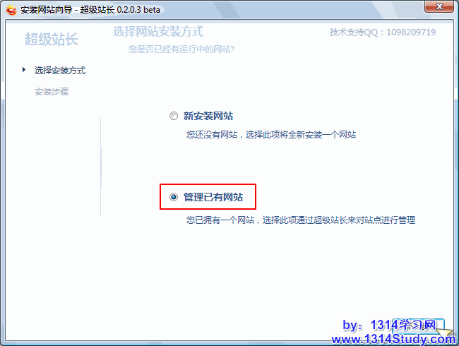 打开超级站长 => 我的网站 => 新建网站 => 管理已有网站: