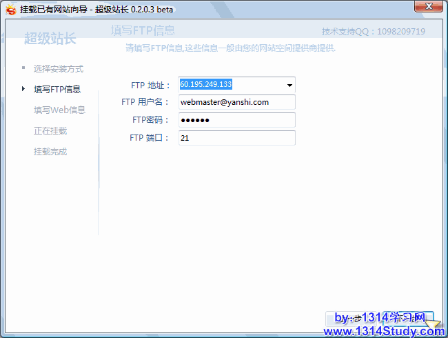 填写已有网站的 FTP 信息,然后点击“下一步”填写 Web 信息: